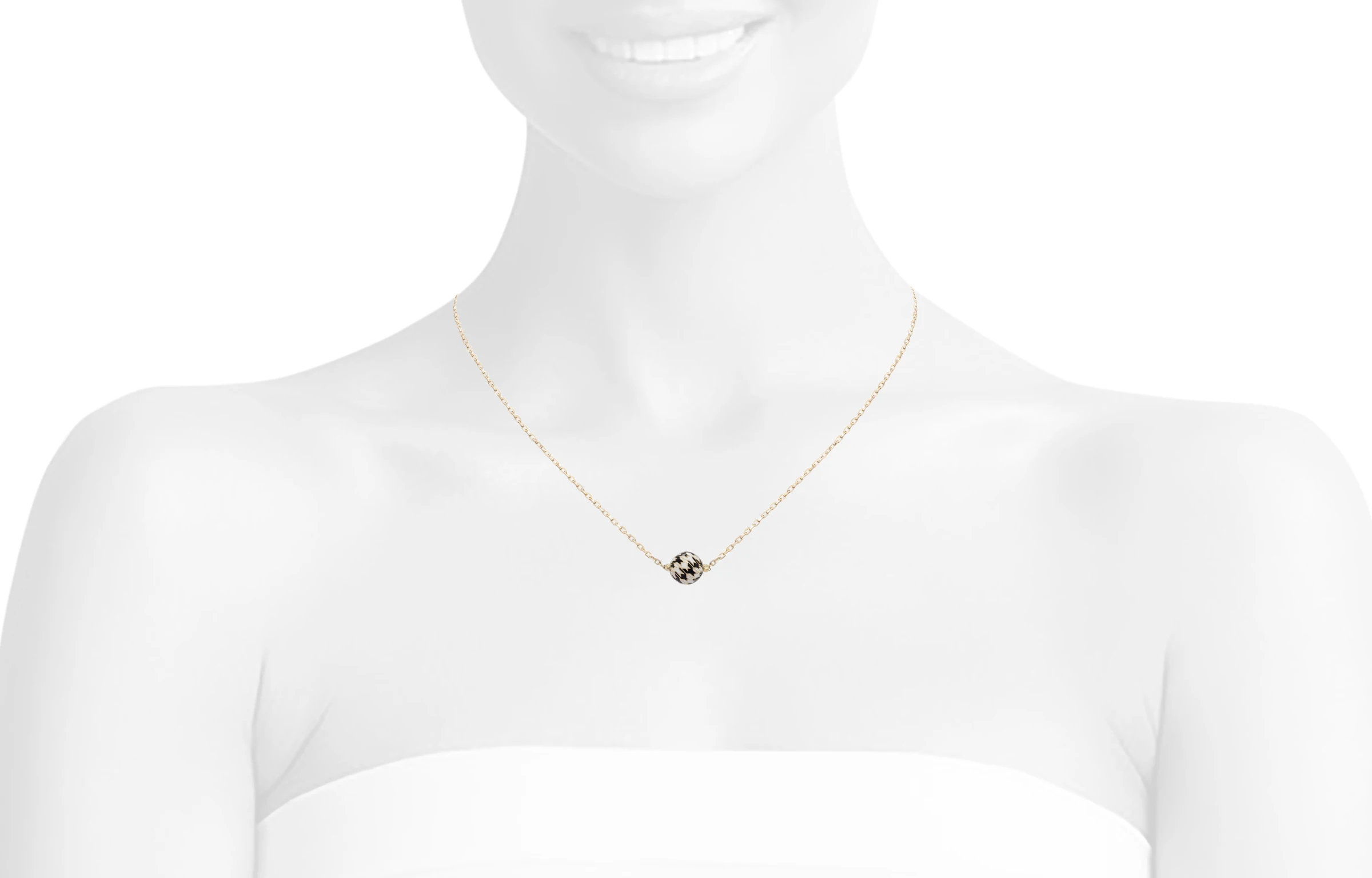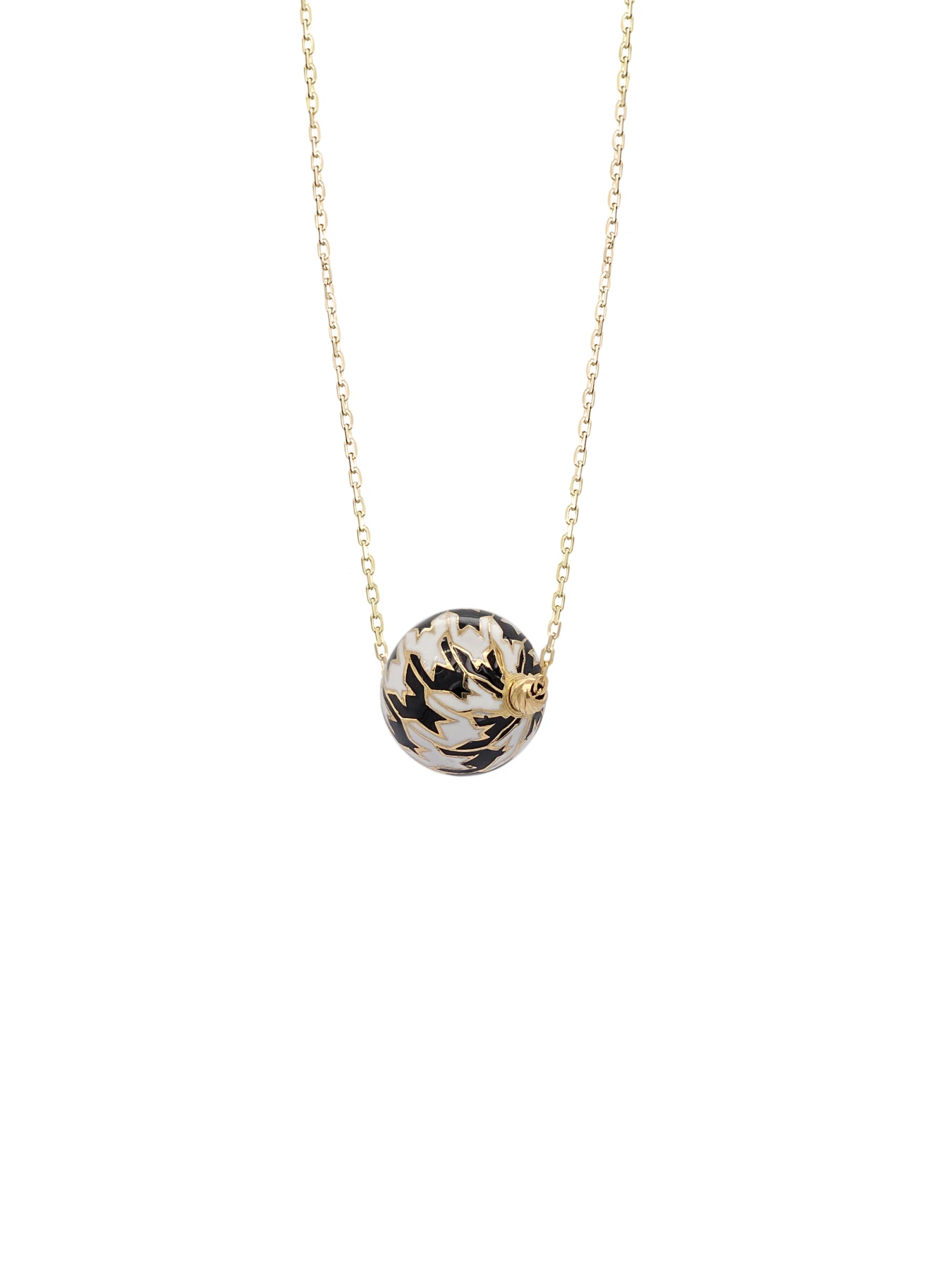 Elegant and timeless, this 18-karat gold necklace features a beautifully crafted spherical bead adorned with enamel. The delicate chain enhances its sophistication, making it a perfect statement piece for any occasion.
